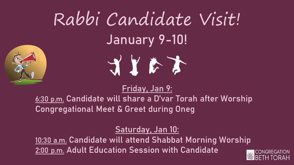 The Shalom Squad fulfills the all-important Jewish value of Hachnasat Orchim (Welcoming Guests & One Another) to Beth Torah for services. We would love to fulfill this mitzvah together!